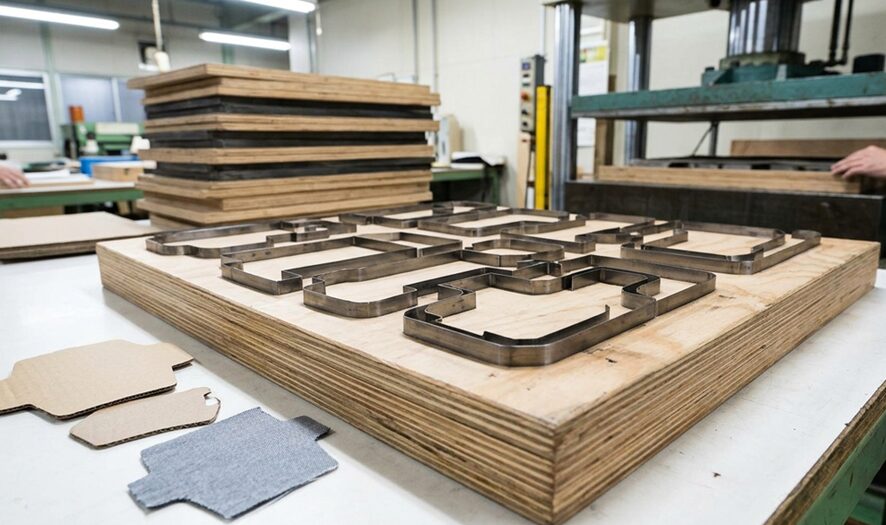 ビク刃(ビク型)とは、ベニヤ板などのベースに溝を掘り、SK材(炭素鋼)の刃物を埋め込んだ抜き型のことです。シール印刷やシルク印刷を施した紙、樹脂、フィルム材料などを任意の形状に型抜きする際に使用されます。今回はそんなビク刃についてご説明いたします。